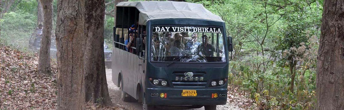 A canter safari (open bus which is able to seat 16 people accompanied by a guide) is a popular way to explore the Corbett Tiger Reserve. It is perfect for a large group of family and friends or corporate groups. One of the best ways to explore the wild terrain of the national park, canter safari is, however, available only in the Dhikala zone. Those residing outside the zone and wishing to explore the wildlife of the area can do so by opting for a canter safari. Canter Safari starts from the Ramnagar & Dhangari gate of the Dhikala zone. The timings of canter safari are Morning 5:30 AM and Afternoon 11:30 AM.