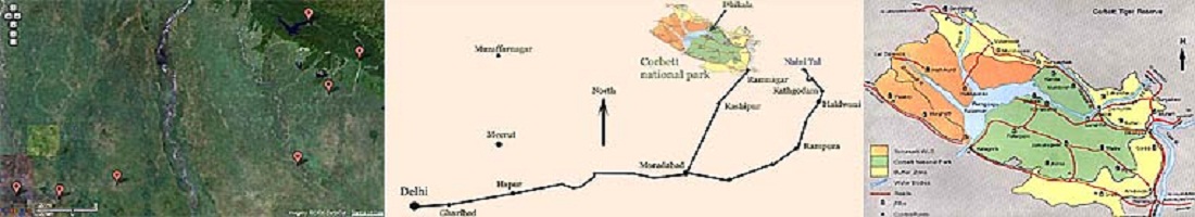 By Road: Dhikala is 300 km from Delhi, 410 km from Lucknow and 51 km from Ramnagar. The route from Delhi spans Hapur-Murababad-Ramnagar. The turn off is some 7 km beyond Muradabad to the left, marked by a small board. The route from Lucknow spans Bareilly. Kichha. Rudrapur. Doraha. Kashipur.